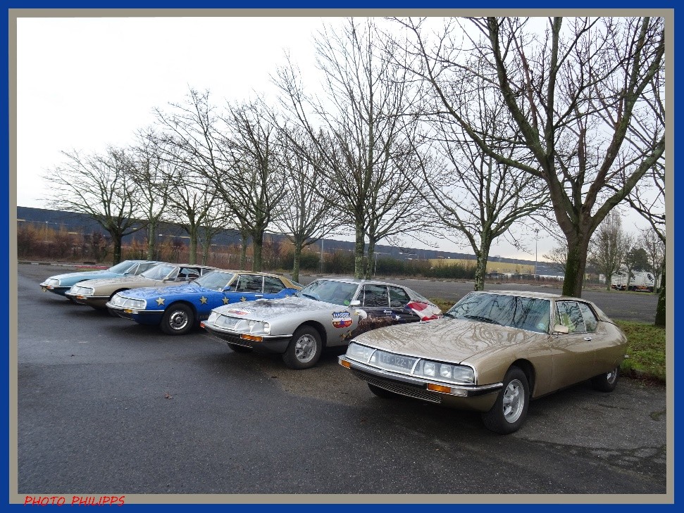 Cela ne se refusant pas, et l’honneur et le plaisir de participer à cette mémorable journée. Ce fut donc huit propriétaires qui purent se rendre disponibles en ce froid et brumeux matin de janvier. Au volant de leur propre SM ils se retrouvèrent sur le parking du feu Conservatoire Citroën d’Aulnay sous-bois.